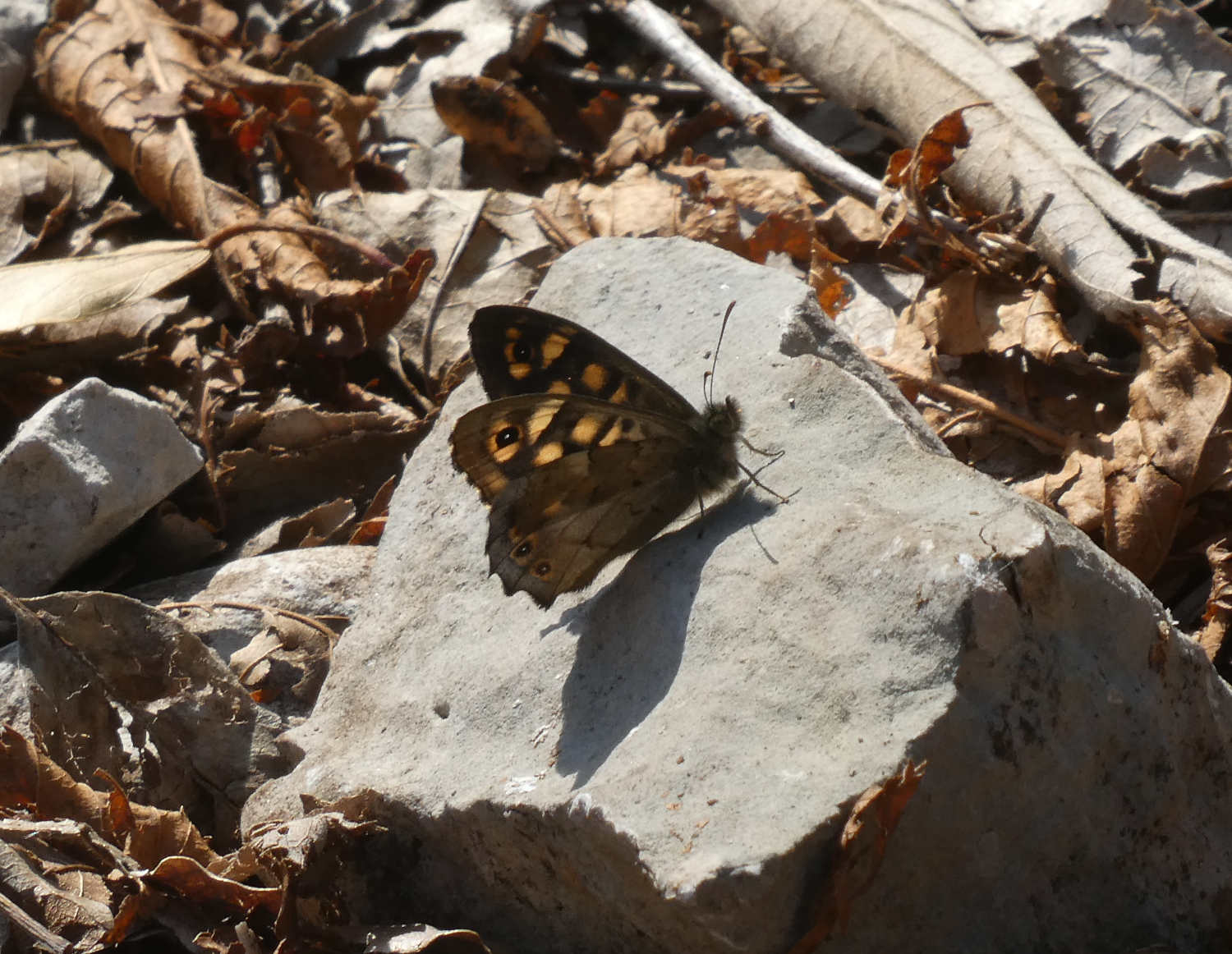 their colours)25th: A few very warm days with temperatures going from 3°C up to 17°C. A couple of short walks brought sightings of 5 or 6 commas (photo), several Large Toroiseshells, a few Brimstones, this Small (?) White (photo), a Red Admiral, a Small Tortoiseshell, a Peacock (photo) and a Speckled Wood (photo) - all of which were seen in or near the local vineyards. March
